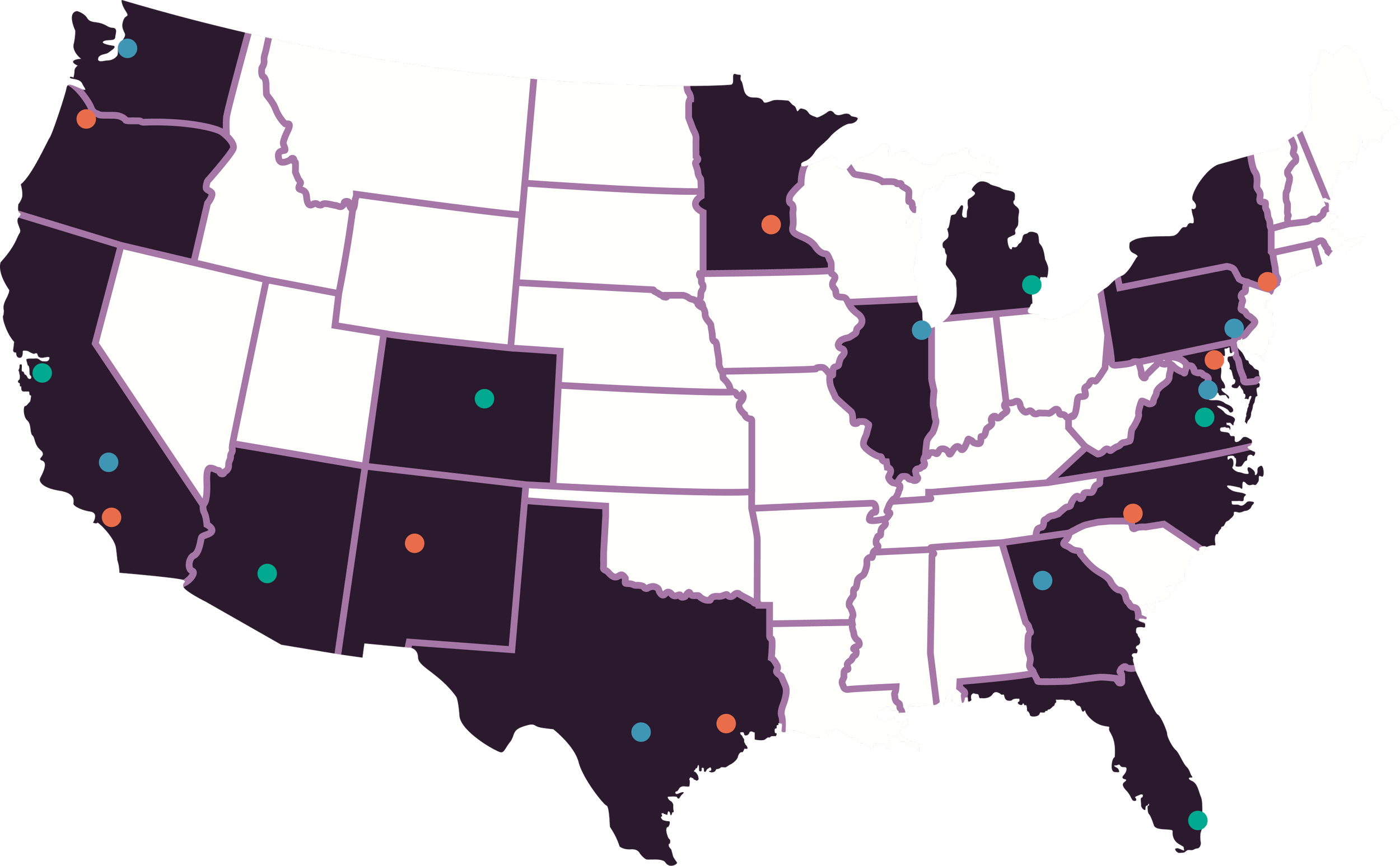 Highlighted states are home to official vendors. No matter where you live in the United States, you are welcome to apply.